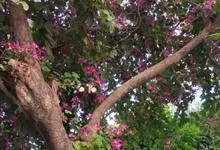 洋紫荆:落叶乔木;树皮暗褐色,近光滑;幼嫩部分常被灰色短柔毛;枝广展,硬而稍呈之字曲折,无毛。叶近革质,广卵形至近圆形,宽度常超过于长度,先端2裂达叶长的1/3,裂片阔,钝头或圆,两面无毛或下面略被…全部>>