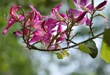 红花羊蹄甲,为豆科羊蹄甲属植物,别名艳紫荆、洋紫荆。半落叶乔木,高达了~10 m,叶草质,近圆形或阔心形,长8~13cm顶端开裂至全叶长1/4~13,裂片顶端圆。总状花序顶生或腋生,花冠紫红色,…全部>>