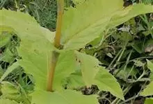 串叶松香草是菊科松香草属植物。多年生草本,根系发达粗壮,支根多,一般株高2-3米,最高的可达3.5米,茎实心,嫩时质脆含汁。叶色深绿,叶片宽大,一般长约60厘米左右,宽30厘米左右,最长叶可达97厘米。…全部>>