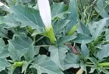 曼陀罗,茄科曼陀罗属一年生大型草本植物,全株光滑。有臭气;叶呈广卯形,边缘具不规则波状浅齿裂;花单生于枝杖间或叶腋,直立,有短梗;花萼是筒状裂片三角形,颜色为白色或淡紫色;果实为蒴果卵状,…全部>>