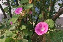 五爪金龙 Sweet),旋花科番薯属多年生缠绕草本植物。茎细长,有细棱;叶片为掌状;花冠紫红色、紫色或淡红色、偶有白色,漏斗状;蒴果近球形。花期5~12月。五爪金龙的叶子类似掌状,有5至7个裂痕,…全部>>