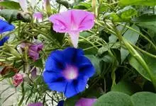 牵牛,学名 Pharbitis nilChoisy ,又名牵牛花、喇叭花,系旋花科牵牛属一年生缠绕草本,全身具短毛。叶互生,心形,通常3裂。花冠呈漏斗状,花色众多,有蓝、红、紫、白等,亦有混色。蒴…全部>>