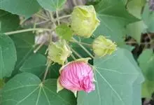 木芙蓉,锦葵科木槿属落叶灌木或小乔木。小枝上有细绒毛;叶片为卵状心形,托叶为披针形,常早落;花单生,花萼为钟形,花冠初为白色或淡红色,后逐渐变为深红色;果实为扁球形,有淡黄色的毛附着。花期8到10月。…全部>>