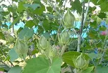 木芙蓉,锦葵科木槿属落叶灌木或小乔木。小枝上有细绒毛;叶片为卵状心形,托叶为披针形,常早落;花单生,花萼为钟形,花冠初为白色或淡红色,后逐渐变为深红色;果实为扁球形,有淡黄色的毛附着。花期8到10月。…全部>>