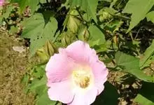 木芙蓉,锦葵科木槿属落叶灌木或小乔木。小枝上有细绒毛;叶片为卵状心形,托叶为披针形,常早落;花单生,花萼为钟形,花冠初为白色或淡红色,后逐渐变为深红色;果实为扁球形,有淡黄色的毛附着。花期8到10月。…全部>>