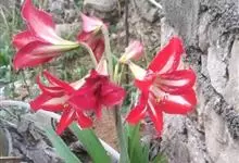 朱顶红 H. E. Moore),石蒜科属多年生草本植物,鳞茎近球形,并有匍匐枝;叶鲜绿色,带形;花茎中空,稍扁,具有白粉,圆筒状,花被裂片长圆形,顶端尖,红色,略带紫色;花丝红色,…全部>>