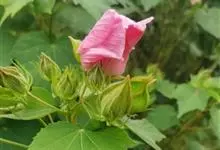 木芙蓉,锦葵科木槿属落叶灌木或小乔木。小枝上有细绒毛;叶片为卵状心形,托叶为披针形,常早落;花单生,花萼为钟形,花冠初为白色或淡红色,后逐渐变为深红色;果实为扁球形,有淡黄色的毛附着。花期8到10月。…全部>>