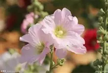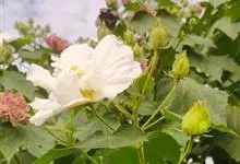 木芙蓉,锦葵科木槿属落叶灌木或小乔木。小枝上有细绒毛;叶片为卵状心形,托叶为披针形,常早落;花单生,花萼为钟形,花冠初为白色或淡红色,后逐渐变为深红色;果实为扁球形,有淡黄色的毛附着。花期8到10月。…全部>>