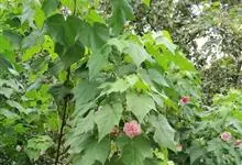 木芙蓉,锦葵科木槿属落叶灌木或小乔木。小枝上有细绒毛;叶片为卵状心形,托叶为披针形,常早落;花单生,花萼为钟形,花冠初为白色或淡红色,后逐渐变为深红色;果实为扁球形,有淡黄色的毛附着。花期8到10月。…全部>>