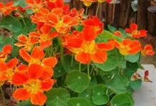 旱金莲是旱金莲科旱金莲属蔓生一年生草本植物。叶互生,叶柄向上扭曲,盾状,叶圆形,具波状浅缺刻,下面疏被毛或有乳点;花黄、紫、桔红或杂色,花托杯状,花瓣为圆形,边缘具缺刻;果实为扁球形;花果期6-10月,…全部>>