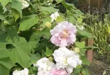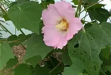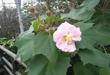 木芙蓉,锦葵科木槿属落叶灌木或小乔木。小枝上有细绒毛;叶片为卵状心形,托叶为披针形,常早落;花单生,花萼为钟形,花冠初为白色或淡红色,后逐渐变为深红色;果实为扁球形,有淡黄色的毛附着。花期8到10月。…全部>>