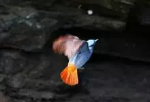 红尾水鸲是雀形目鹟科水鸲属鸟类,又称蓝石青儿、石燕、溪红尾鸲等。雄鸟主体均为暗灰蓝色,额基和眼先深灰黑色;翼暗褐色,外翈羽缘蓝灰色;虹膜褐色,喙黑色,脚肉褐色至黑褐色。雌鸟上体为略泛蓝的暗灰褐色,…全部>>