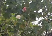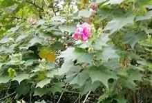 木芙蓉,锦葵科木槿属落叶灌木或小乔木。小枝上有细绒毛;叶片为卵状心形,托叶为披针形,常早落;花单生,花萼为钟形,花冠初为白色或淡红色,后逐渐变为深红色;果实为扁球形,有淡黄色的毛附着。花期8到10月。…全部>>