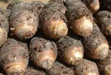 芋头又称芋、芋艿,天南星科植物的地下球茎,形状、肉质因品种而异,通常食用的为小芋头。多年生块茎植物,常作一年生作物栽培。叶片盾形,叶柄长而肥大,绿色或紫红色;植株基部形成短缩茎,逐渐累积养分肥大成肉…全部>>