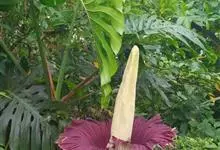 巨魔芋 Becc. ex Arcang.)是天南星科、魔芋属植物。多年生球茎,块茎直径可达65厘米,最重可超过100千克,其叶柄通常高3-4米,叶片直径超过5米,覆盖面积超过20平方米。…全部>>