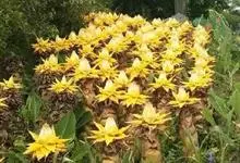 地涌金莲 C. Y. Wu ex H. W. Li)是芭蕉科地涌金莲属多年生丛生草本。地涌金莲徦茎矮小,真茎在开花前短小;叶片长椭圆形;花序直立,生于假茎上,苞片淡黄或黄色;浆果三棱状卵形;种子大,…全部>>