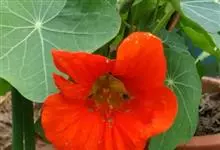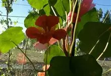 旱金莲是旱金莲科旱金莲属蔓生一年生草本植物。叶互生,叶柄向上扭曲,盾状,叶圆形,具波状浅缺刻,下面疏被毛或有乳点;花黄、紫、桔红或杂色,花托杯状,花瓣为圆形,边缘具缺刻;果实为扁球形;花果期6-10月,…全部>>