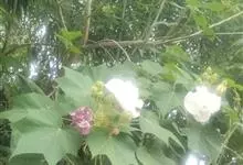 木芙蓉,锦葵科木槿属落叶灌木或小乔木。小枝上有细绒毛;叶片为卵状心形,托叶为披针形,常早落;花单生,花萼为钟形,花冠初为白色或淡红色,后逐渐变为深红色;果实为扁球形,有淡黄色的毛附着。花期8到10月。…全部>>