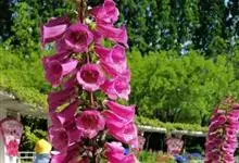 毛地黄是车前科、毛地黄属一年生或多年生草本植物。株高0.5—1米,茎直立,少分枝,全株被灰白色短柔毛和腺毛叶基生,呈莲座状,卵圆形或卵状披针形。顶生总状花序,花冠钟状,紫红色,内面有浅白斑点。菊果卵形。…全部>>
