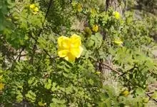 黄木香花 Rehd.)是蔷薇科、蔷薇属植物,为木香花的变型品种,攀缘小灌木,高可达6米。小叶3-5枚,稀7枚,小叶片椭圆形或长圆状披针形,先端急尖或稍钝,基部近圆形或宽楔形,边缘有紧贴细锯齿。花小型,…全部>>