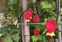 红萼苘麻是锦葵科、苘麻属常绿软木质灌木,叶绿色,长5-10厘米,心形,叶端尖,叶缘有钝锯齿,有时分裂,有细细的叶柄;叶互生,掌状叶脉;花单生于叶腋,具长梗,下垂;花萼红色,半套着大约4厘米长的花瓣,…全部>>