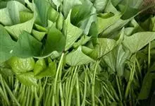 红薯叶又称地瓜叶,即红薯生长过程中的茎上的叶子。红薯叶有很多用途,比如有提高免疫力,保护视力,延缓衰老,解毒等作用。一般食用的是秋天红薯成熟后地上秧茎顶端的嫩叶。 全部>>