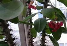 虎刺梅:别称铁海棠,是蔓生灌木植物。茎多分枝,长60-100厘米,直径5-10毫米,具纵棱,密生硬而尖的锥状刺,刺长1-1.5厘米,直径0.5-1.0 毫米,常呈3-5列排列于棱脊上,呈旋转。叶互生…全部>>