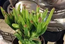 筒叶花月,是景天科青锁龙属的多年生草本植物。植株多分株,灌木状,茎较粗壮,圆柱形,表皮灰褐色;叶片肉质,互生,呈圆筒状,簇生于茎或分枝顶端,叶端呈斜截形,截面为椭圆形;花呈星状,淡白色;花期秋季。…全部>>