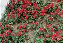 一串红,又称爆仗红、象牙红,为唇形科鼠尾草属植物。花序修长,色红鲜艳,花期又长,适应性强,为中国城市和园林中最普遍栽培的草本花卉。原产巴西、南美洲。喜温暖和阳光充足环境。不耐寒,耐半阴,忌霜雪和高温,…全部>>