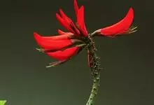 鸡冠刺桐是豆科、刺桐属落叶灌木或小乔木,茎和叶柄稍具皮刺。羽状复叶具3小叶;小叶长卵形或披针状长椭圆形,花与叶同出,总状花序顶生,每节有花1-3朵;花深红色,荚果长约15厘米,褐色,种子间缢缩;种子大,…全部>>
