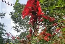 鸡冠刺桐是豆科、刺桐属落叶灌木或小乔木,茎和叶柄稍具皮刺。羽状复叶具3小叶;小叶长卵形或披针状长椭圆形,花与叶同出,总状花序顶生,每节有花1-3朵;花深红色,荚果长约15厘米,褐色,种子间缢缩;种子大,…全部>>