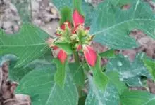 猩猩草:常绿或半常绿灌木,盆栽时株高0.5米-2米,在亚热带地区可长到6米以上。茎直立而光滑,单叶互生,卵状椭圆形至阔披针形,具不规则的深缺刻。长10-15厘米。花小,有蜜腺,排列成密集的伞房花序。…全部>>