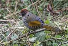 栗颈噪鹛是噪眉科、噪鹛属中型鸟类,体长22-25厘米。头顶至枕暗石板灰色,前额、头侧、颏、喉至上胸黑色,耳后至颈侧有一栗棕色块斑,在头后颈侧极为醒目。上体暗橄榄褐色,两翅黑褐色,初级飞羽外翈沾灰。…全部>>