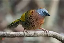 栗耳凤鹛,雌雄羽色相似。额、头顶至枕灰色,头顶有一短的不甚明显的羽冠,系由头顶羽毛向后延长形成、灰色具细的白色羽干纹,眼先灰色,眉纹白色不甚明显,其上有时杂有褐斑,…全部>>