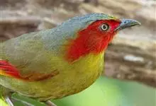 红头噪鹛中型鸟类,体长22~28厘米。头顶棕红色,眼先、脸、颏、喉黑色,上体橄榄色或棕橄榄褐色,外侧飞羽金黄色,尾羽基部亦为金黄色,下体多为暗橄榄褐色。该种和赤尾噪鹛较为相似,…全部>>