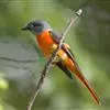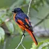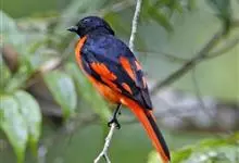 灰喉山椒鸟:共有8个亚种。体长18-22厘米。雄鸟头部和背亮黑色,腰、尾上覆羽和下体朱红色,翅黑色具一大一小的两道朱红色翼斑。中央尾羽黑色,外侧尾羽基部黑色,端部红色。…全部>>