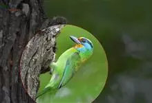 绿拟啄木鸟为鴷形目,须科,拟啄木属的一种。形较大拟啄木鸟略小,体长约260mm。头、颈及胸浅褐而具淡黄白色条纹;喉几为淡黄白色;身体余部草绿色。虹膜棕褐色,眼周裸露部黄色;嘴峰角黄色;跗跖和趾角黄…全部>>