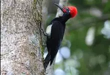 白腹黑啄木鸟,是啄木鸟科、黑啄木鸟属的中型鸟类,体长43-46厘米,头顶具长的红色羽冠,颚纹亦为红色,其余头、颈、胸和上体黑色,腰和腹白色,飞翔时白色腋羽和翅下覆羽亦明显可见。雌鸟头顶黑色,…全部>>