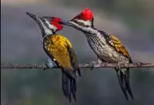 三趾啄木鸟,是啄木鸟科、啄木鸟属的小型鸟类,体长20-23厘米,雄鸟头顶金黄色,雌鸟黑色而具白色斑点。眼至耳覆羽黑色,眼后有一条白色纵纹,颊纹白色,颚纹黑色,甚为醒目。枕和后颈黑色,…全部>>