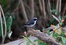 小燕尾鸫科燕尾属的一种鸟类,体长13厘米,尾短,与黑背燕尾色彩相似但尾短而叉浅。其前额白色,翼上白色条带延至下部,且尾开叉,嘴直而壮,嘴须发达;第1枚初级飞羽大约为第2枚初级飞羽长度的一半;尾比翅长,…全部>>