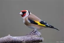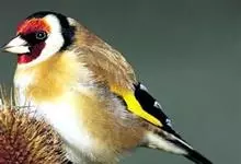 红额金翅雀:共有14个亚种。小型鸟类,体长12-14厘米。额、脸颊和颏朱红色,眼先和眼周黑色,在淡色的头部极为醒目。上体灰褐或乌褐色,尾上覆羽白色,两翅和尾黑色,翅上有黄色斑。下体喉、胸灰褐或乌褐色…全部>>