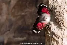 红翅旋壁雀:体重15-23克,体长120-178毫米。是一种体型略小的鸟类。尾短而嘴长,翼具醒目的绯红色斑纹。飞羽黑色,外侧尾羽羽端白色显著,初级飞羽两排白色点斑飞行时成带状。繁殖期雄鸟脸及喉黑色,…全部>>