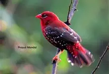 红梅花雀小型鸟类,体长9-10厘米。雄鸟通体朱红色,背、肩、胸等满布白色小斑点,两翅和尾黑褐色均具白色端斑,嘴红色,脚蜡黄色。雌鸟上体淡褐色或赭褐色,翅上中覆羽、大覆羽和内侧飞羽末端具白色斑点,…全部>>