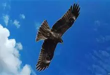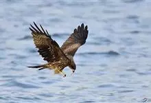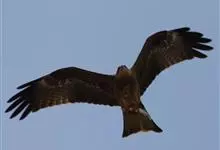 黑鸢:是鹰科、鸢属的一种中型猛禽,共有5个亚种。体长54-69厘米。上体暗褐色,下体棕褐色,均具黑褐色羽干纹,尾较长,呈叉状,具宽度相等的黑色和褐色相间排列的横斑;飞翔时翼下左右各有一块大的白斑。…全部>>