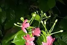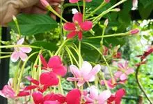 使君子 Jongkind)是使君子科、使君子属攀援灌木,叶对生,椭圆形,两面均被灰白色柔毛。穗状花序,倒挂下垂。花期夏秋。果有五棱,熟时黑色,种子白色。分布于印度、缅甸、菲律宾和中国。喜温润,深根性,…全部>>