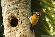 三趾啄木鸟,是啄木鸟科、啄木鸟属的小型鸟类,体长20-23厘米,雄鸟头顶金黄色,雌鸟黑色而具白色斑点。眼至耳覆羽黑色,眼后有一条白色纵纹,颊纹白色,颚纹黑色,甚为醒目。枕和后颈黑色,…全部>>