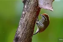 斑姬啄木鸟是鴷形目啄木鸟科姬啄木鸟属鸟类,又叫姬啄木鸟、小啄木鸟。体长9-10厘米。嘴尖而略粗壮,灰黑色;额棕色,向颈后逐渐过渡至橄榄绿色;眉纹白色,过眼纹黑褐色,其下有一白纹,…全部>>