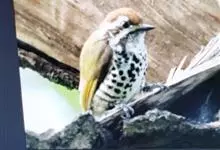 斑姬啄木鸟是鴷形目啄木鸟科姬啄木鸟属鸟类,又叫姬啄木鸟、小啄木鸟。体长9-10厘米。嘴尖而略粗壮,灰黑色;额棕色,向颈后逐渐过渡至橄榄绿色;眉纹白色,过眼纹黑褐色,其下有一白纹,…全部>>