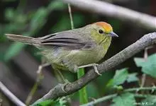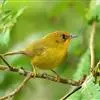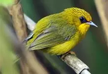 金头穗鹛小型鸟类,体长10~11厘米,是一种黄色小鸟。头顶金黄色有黑色纵纹,眼先黑色,在头、颊和耳羽金黄色的衬托下亦甚醒目。上体橄榄黄色,下体亮黄色,腹和两胁沾绿。…全部>>