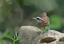 长嘴钩嘴鹛是画眉科、钩嘴鹛属中型鸟类,体长24-27厘米。嘴粗壮、长而尖且向下弯曲。上体橄榄褐色或橄榄棕褐色,颊和耳羽灰褐色,其后有一栗红色斑,耳羽上面从眼后开始有一长的白色纵纹沿颈侧向下。下体白色,…全部>>
